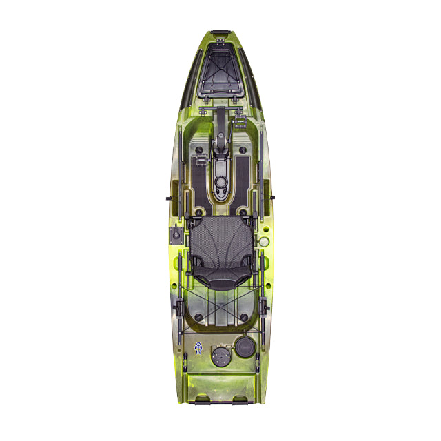 The Max 10 is the most compact full featured boat on the market. This fishing kayak will fit in the bed of a truck but has many of the features of it's bigger sibling, the Slayer Max Propel 12.5. The Max 10 flawlessly combines features and size, making this kayak like no other on the market. Key features include: The bow hatch area with a location for battery storage and easy transducer wiring through the integrated hull scupper. Built in transducer mounting plate on the hull so you do not have to drill into your kayak to mount your transducer. A super convenient under-seat tackle storage drawer. Dual electronic switch mounting plates that are replaceable if you want to change your setup without drilling into your boat. Stern inserts built in for easy mounitng of a Power-Pole Micro Anchor or a motor. Ample storage and groove tracks for mounting accessories and a Sidekick wheel system.