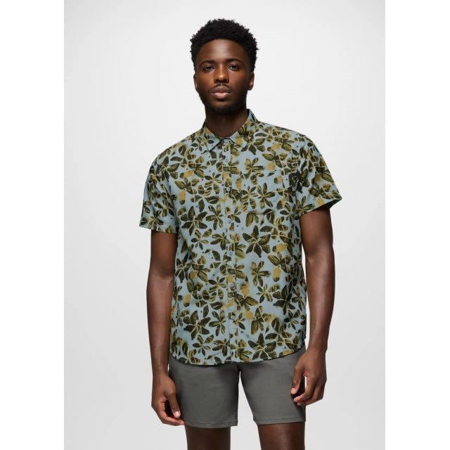This printed short sleeve button-up is made for exploring the outdoors with built-in UPF50 + protection whether you're on a long hike or walking around your neighborhood. To stay comfortable, the fabric is moisture-wicking with a mesh vent in the back. There's an interior stash pocket to keep your keys safe.