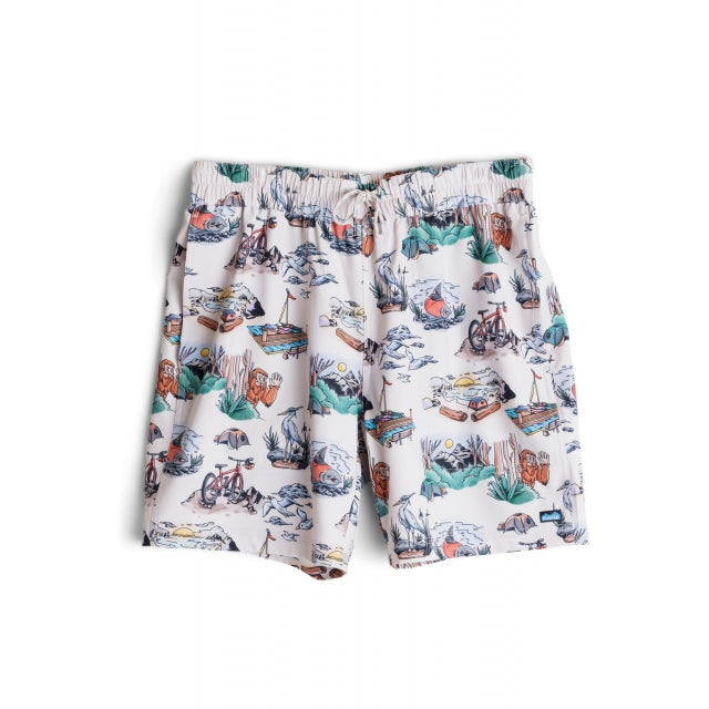 The Costa is a hybrid short with function for the drink and fashion for the pub. Details run deep here with pattern round woven draw cord with KAVU logo printed aglets, on-seam mesh hand pockets, back patch pocket with rounded corners and eyelet drains, and key bungee with hook and loop closure. Constructed with one of our favorite fabrics - a printed poly stretch that is quick dry and shows color beautifully.Regular fit, elastic waist short, custom rope drawcord with logo printed aglet, front pockets with mesh pocket bags, back patch pocket with Velcro closure, eyelet drain hole, and internal elastic cord key loop, double needle reinforced seams.