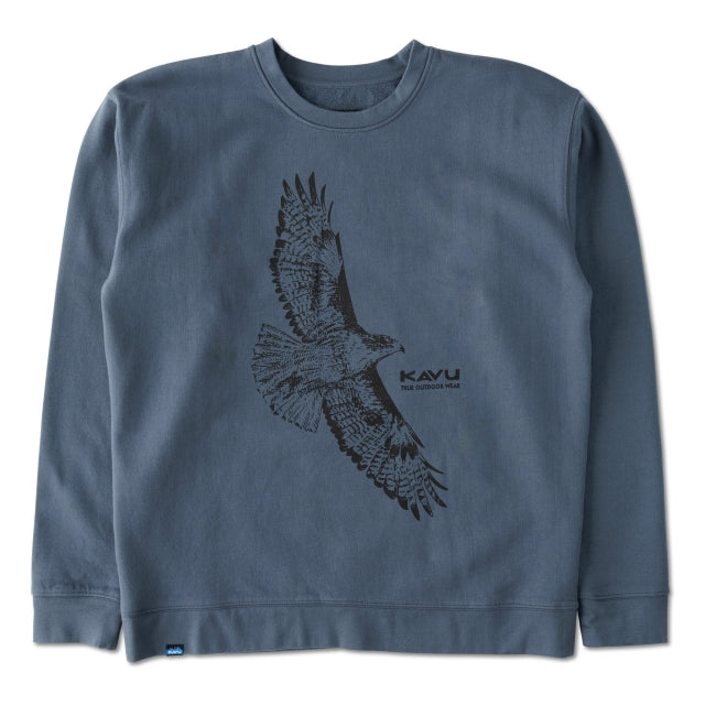 Basics are back! KAVU Crew passes the smell test with a heavy weight garment dyed 100% cotton crew sporting three colors and three unique graphics.Standard unisex fit, pullover crew neck sweatshirt, screen print on front, ribbed neckband, sleeve cuffs and waistband.