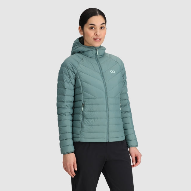 The Transcendent Down Hoodie features a bluesign approved 100% recycled shell and responsibly sourced 800+ fill power down for versatile, insulated warmth in cold temperatures from late fall to early spring.