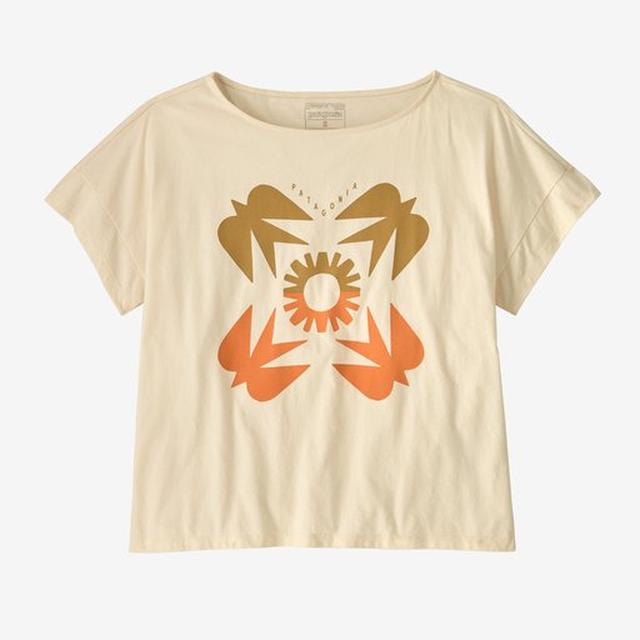 Like wood-block printing, James Coffman's Sunfirst graphic uses simple repeated forms. The artwork is on an everyday-weight T-shirt made with organic cotton, which uses 84% less water and creates 16% less CO2 than a conventional cotton T-shirt. Made in a Fair Trade Certified factory.