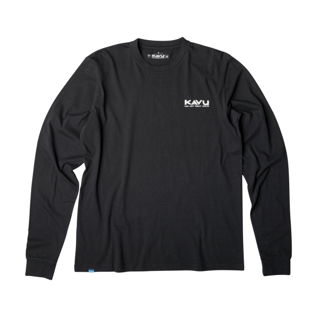 Our top selling long sleeve t-shirt. This is a KAVU staple featuring one of the best logos in the business. Now in 100% certified hypoallergenic organic cotton.Casual fit, long sleeve crew neck T-shirt, small screen print on front left chest, main screen print on center back, heat transferred back neck label.